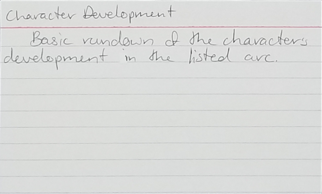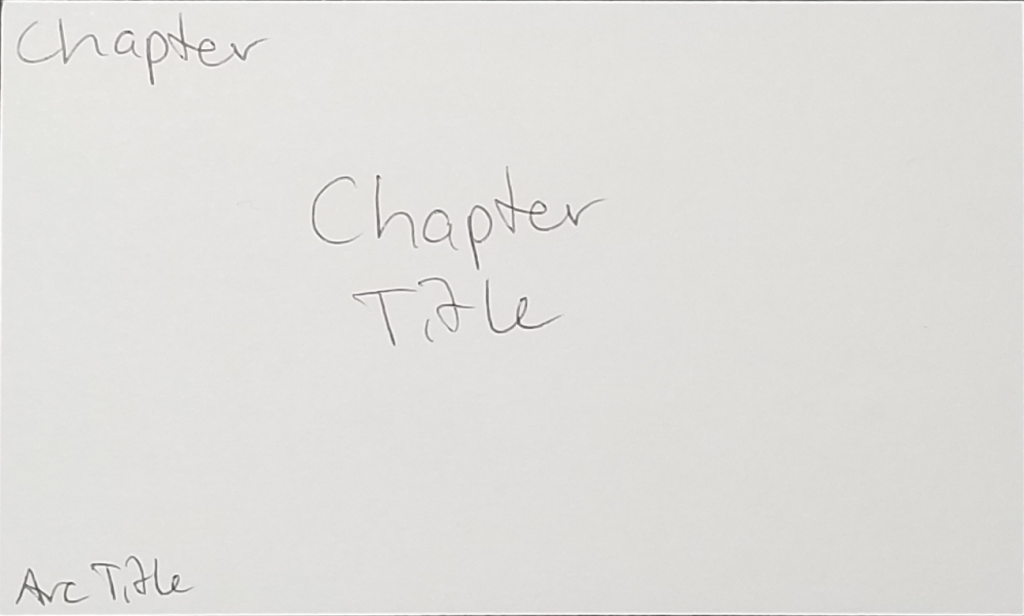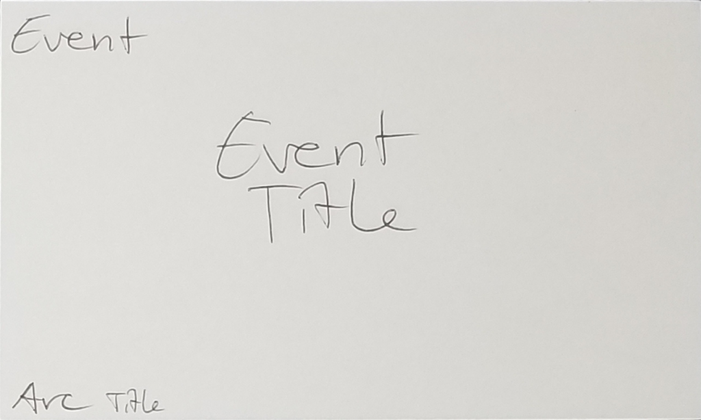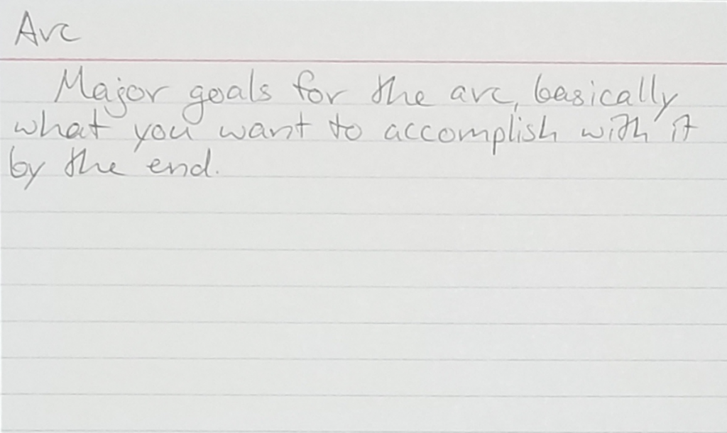 This is the start of an arc that various events, chapters, pieces of character development, and notes may fall under. Write the major goals for the arc on the back of the card.