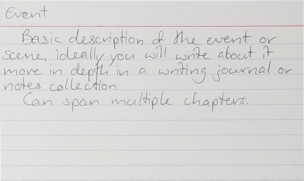 Events can be a single scene or a series of them, and can span multiple chapters. The “Arc Title” section can be left blank until you decide which arc the event belongs to.